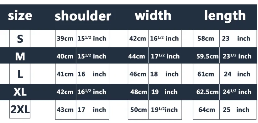 Size :S M L XL 2XL