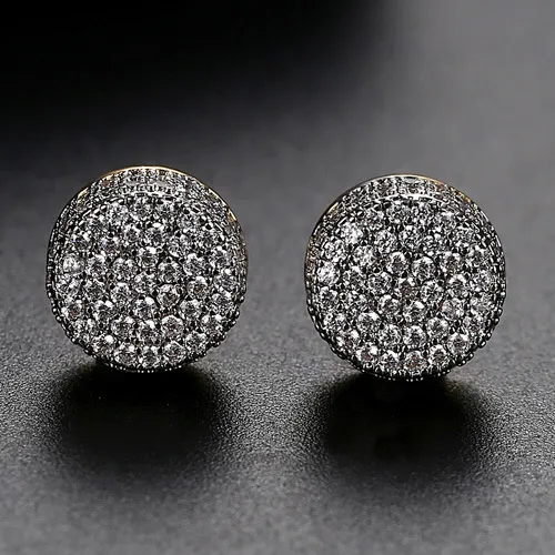 JINSE Hip Hop 9MM Round Cubic Zirconia Earrings For Men Ear Studs Crystal Green White Male Earings Fashion Jewelry Brincos