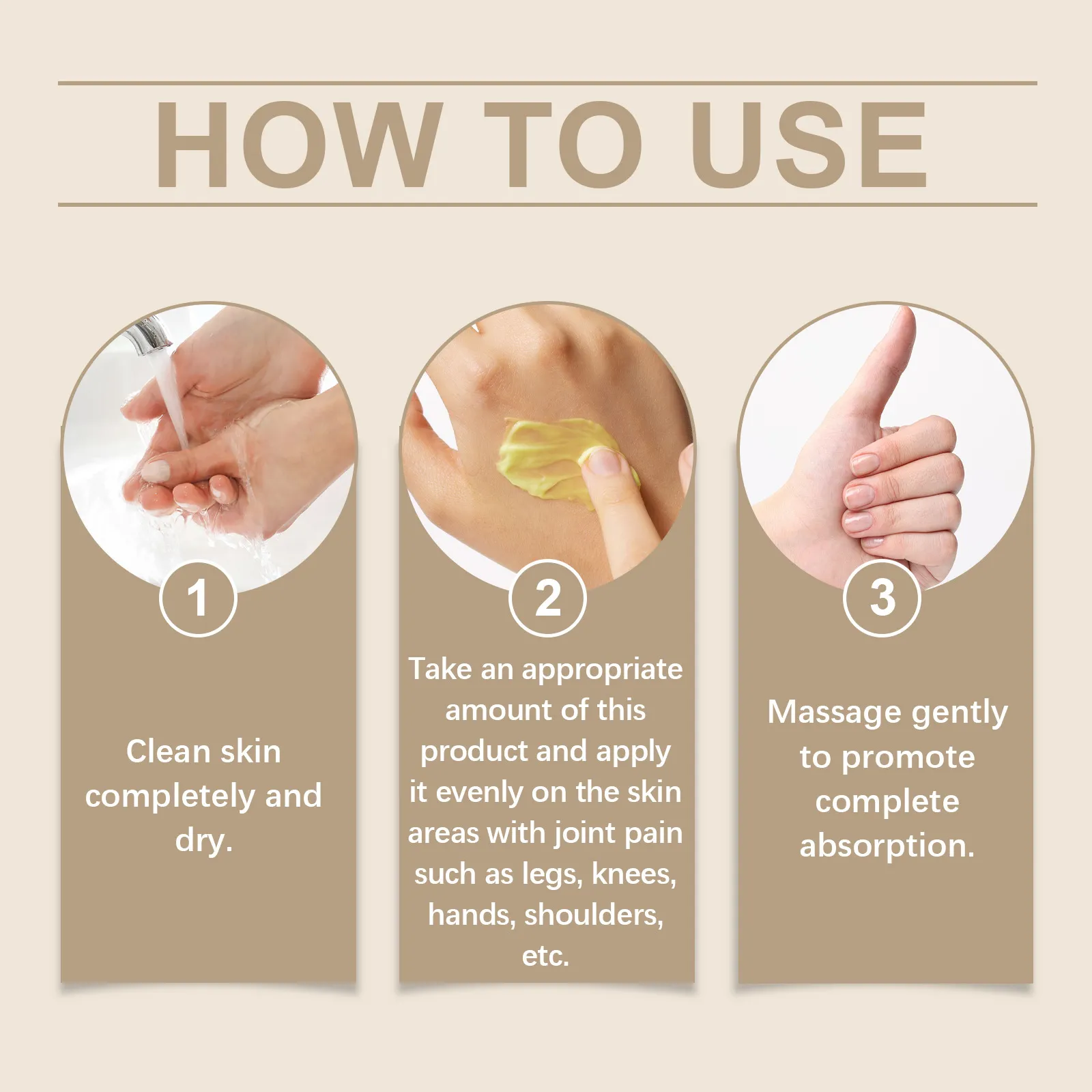 Applying our Joint Care Cream Ointment is simple and convenient. Just massage a small amount into the affected area for instant comfort. The non-greasy formula absorbs quickly, making it ideal for use throughout the day.