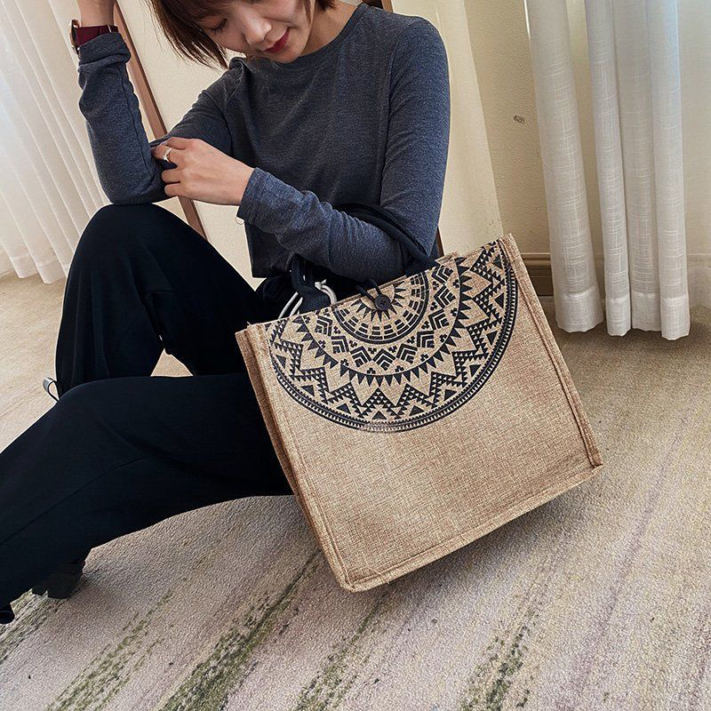 Sen line linen tote bag jute shopping bag coarse linen shoulder bag small fresh literary linen bag lady shoulder bag