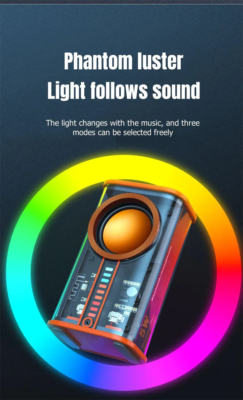 Unleash the future of audio with the K07 Transparent Mecha Wireless Bluetooth Speaker—a cyberpunk-inspired music center designed for those who crave bold aesthetics and powerful sound. Featuring a transparent mecha design, dynamic sound light rhythm, and a built-in subwoofer, this speaker is more than just a gadget; it’s an audio-visual experience.
