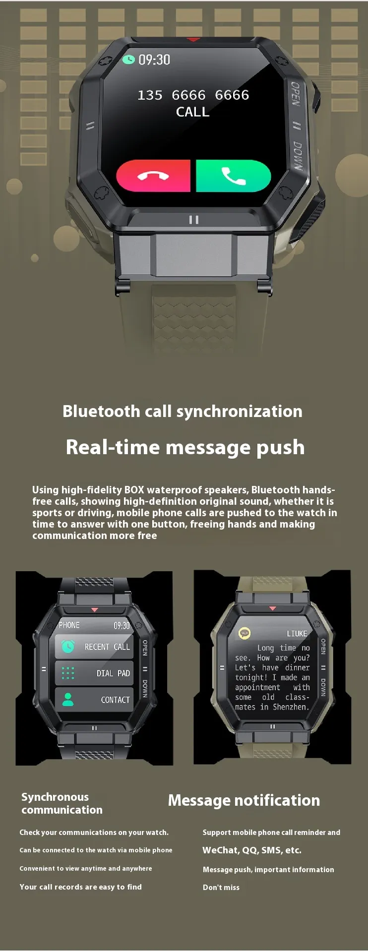 The waterproof feature ensures that the K55 Smart Watch can handle any adventure, whether it’s in the water or during a heavy workout.