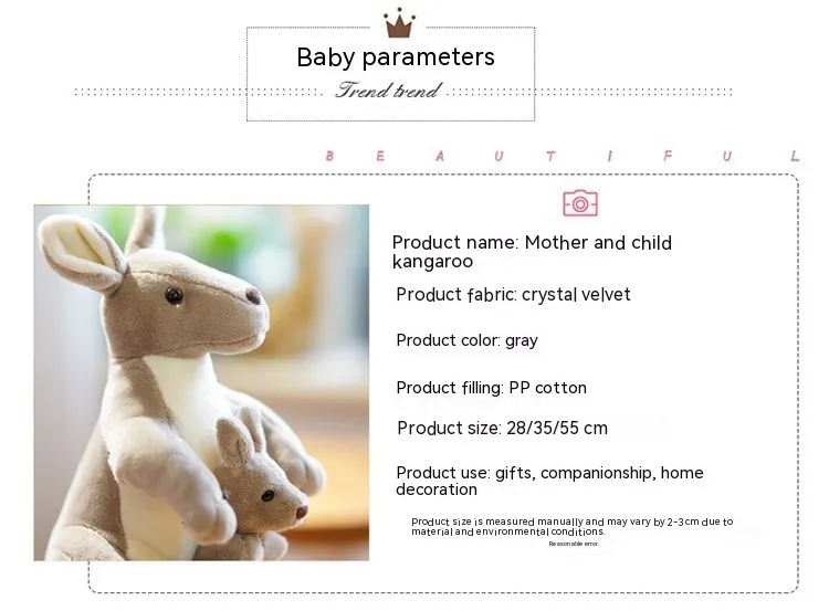It’s more than a plush toy — it’s a keepsake that grows with its owner, providing emotional comfort and lasting joy. Whether it’s displayed on a nursery shelf or tucked under a little one’s arm at night, the Kangaroo Teddy always brings warmth and smiles.