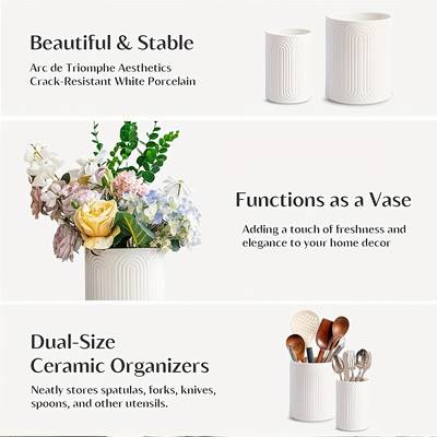 Description – KEMORELA 18.03cm + 13.72cm Ceramic Utensil Holder Set