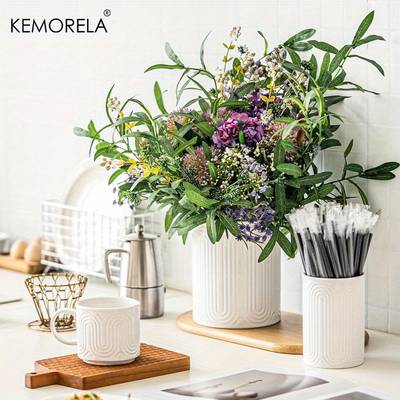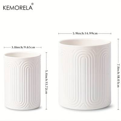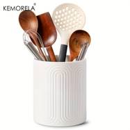 KEMORELA Ceramic Kitchen Utensil Holder Set 1/2pcs Arctic White Embossed Countertop Organizers
