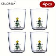 KEMORELA Christmas Tree Glasses Set – Reusable Glass Cups for Coffee, Juice, Milk, and More