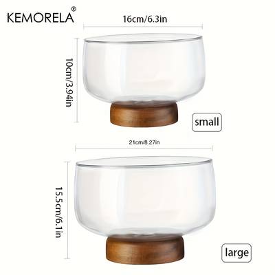 Product Description: KEMORELA Large Glass Cake Bowl with Elegant Wooden Stand – The Perfect Display for Cakes, Desserts, and More