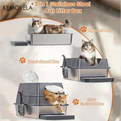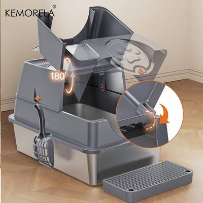 The KEMORELA XL Stainless Steel Cat Litter Box with Lid is a premium, extra-large litter box designed for big cats, multi-cat households, and pet owners wanting a cleaner, more hygienic setup. Made from high-quality stainless steel, it is odor-resistant, non-sticky, leak-proof, and incredibly easy to clean.