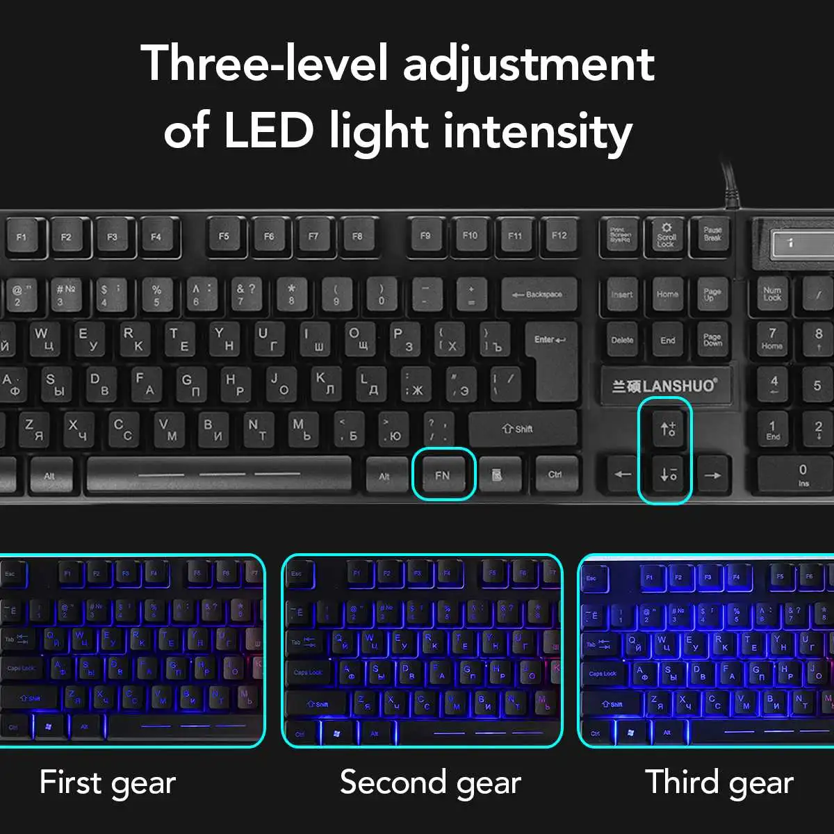 Russian USB wired backlit keyboaRussian USB wired backlit keyboard and mouse set