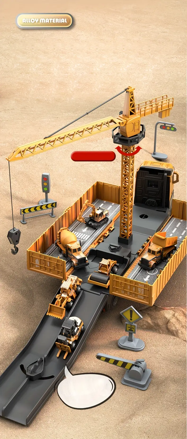Crafted from high-quality, non-toxic materials, each vehicle is built to withstand rough play, ensuring safety while keeping the play experience engaging. The alloy construction provides durability and a realistic touch, making it feel like a miniature version of real construction equipment. With its easy-to-handle design, the toy set is perfect for small hands, offering a comfortable grip and intuitive control that encourages independent play.