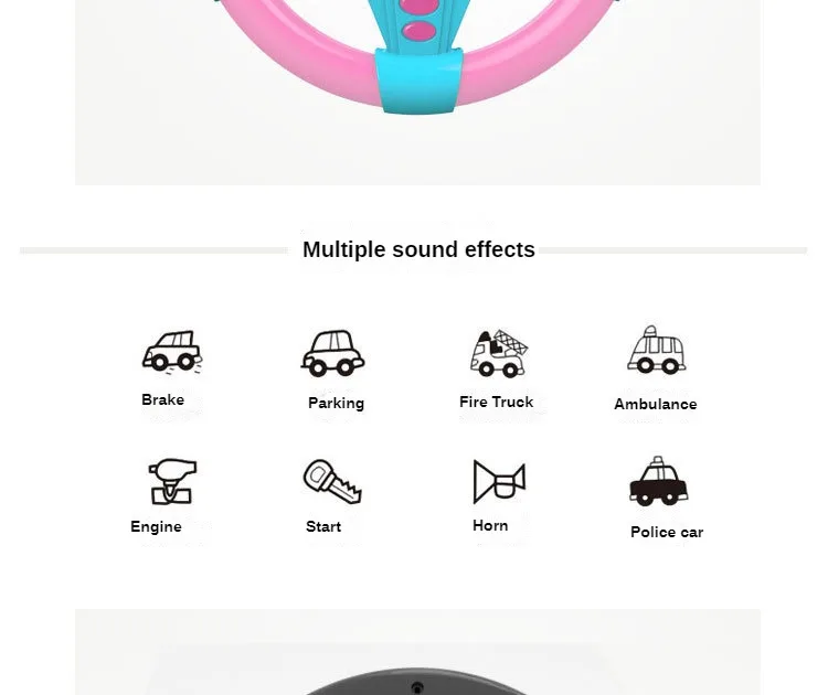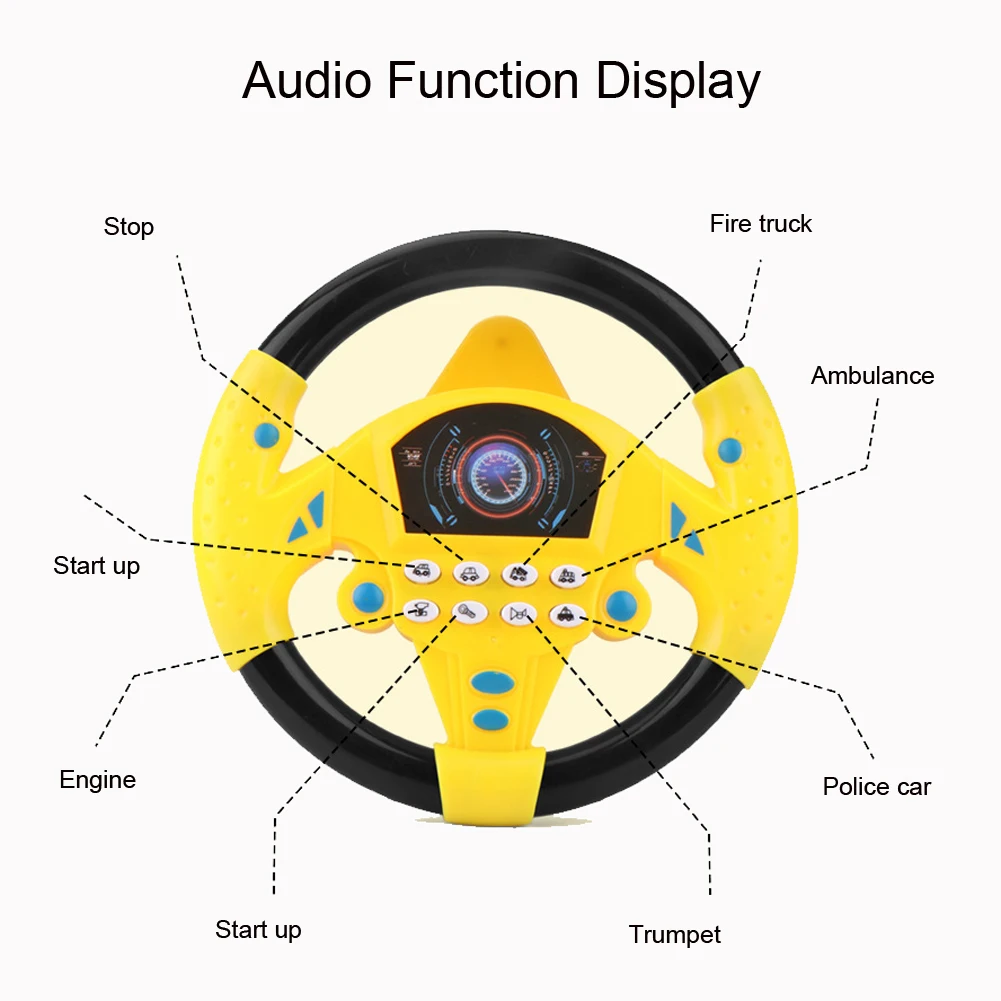 This driving simulator toy offers a realistic driving experience with a responsive steering wheel, horn sound, engine start-up noise, and