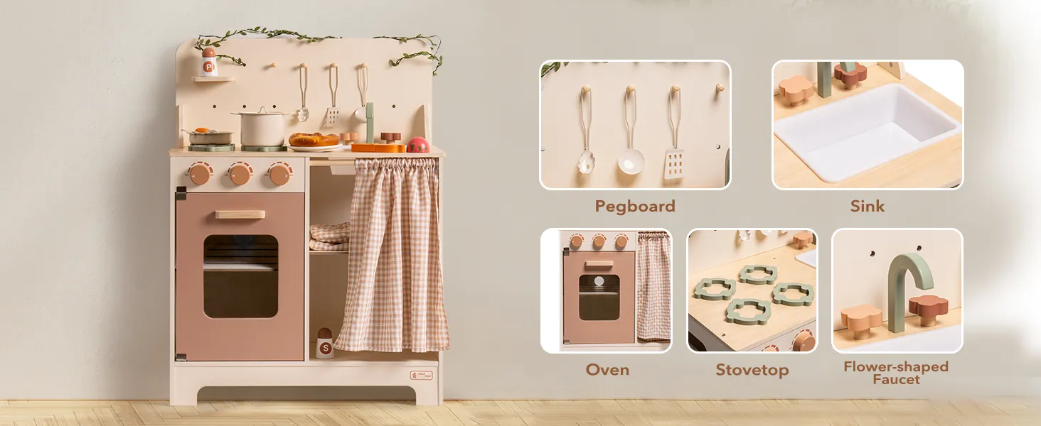 - 【Easy to assemble】Follow the instructions for easy assembly. This set of accessories includes leaf light rope, apron, grooves and more, allowing children to create their own unique kitchen style.