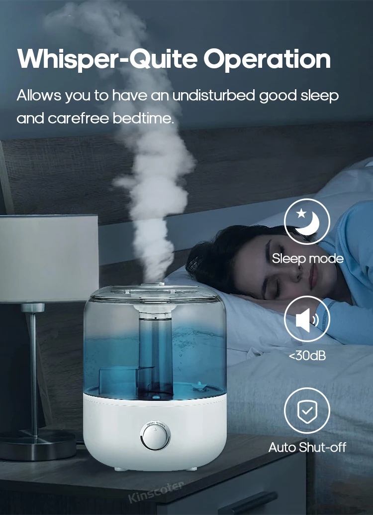 Operating at under 38 dB, the KINSCOTER humidifier is designed to work quietly in the background without disturbing your activities. This