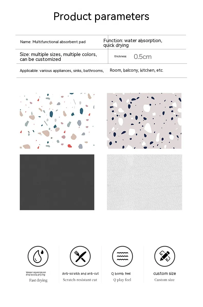 The Kitchen Countertop Drain Mat is an essential kitchen accessory that helps keep your countertops dry, organized, and free from water damage. With its absorbent, non-slip design and easy maintenance, this mat offers an efficient solution for drying dishes, washing produce, and protecting your kitchen surfaces. Whether you're looking to prevent water stains or simply keep your space tidy, this mat is a must-have for your kitchen.