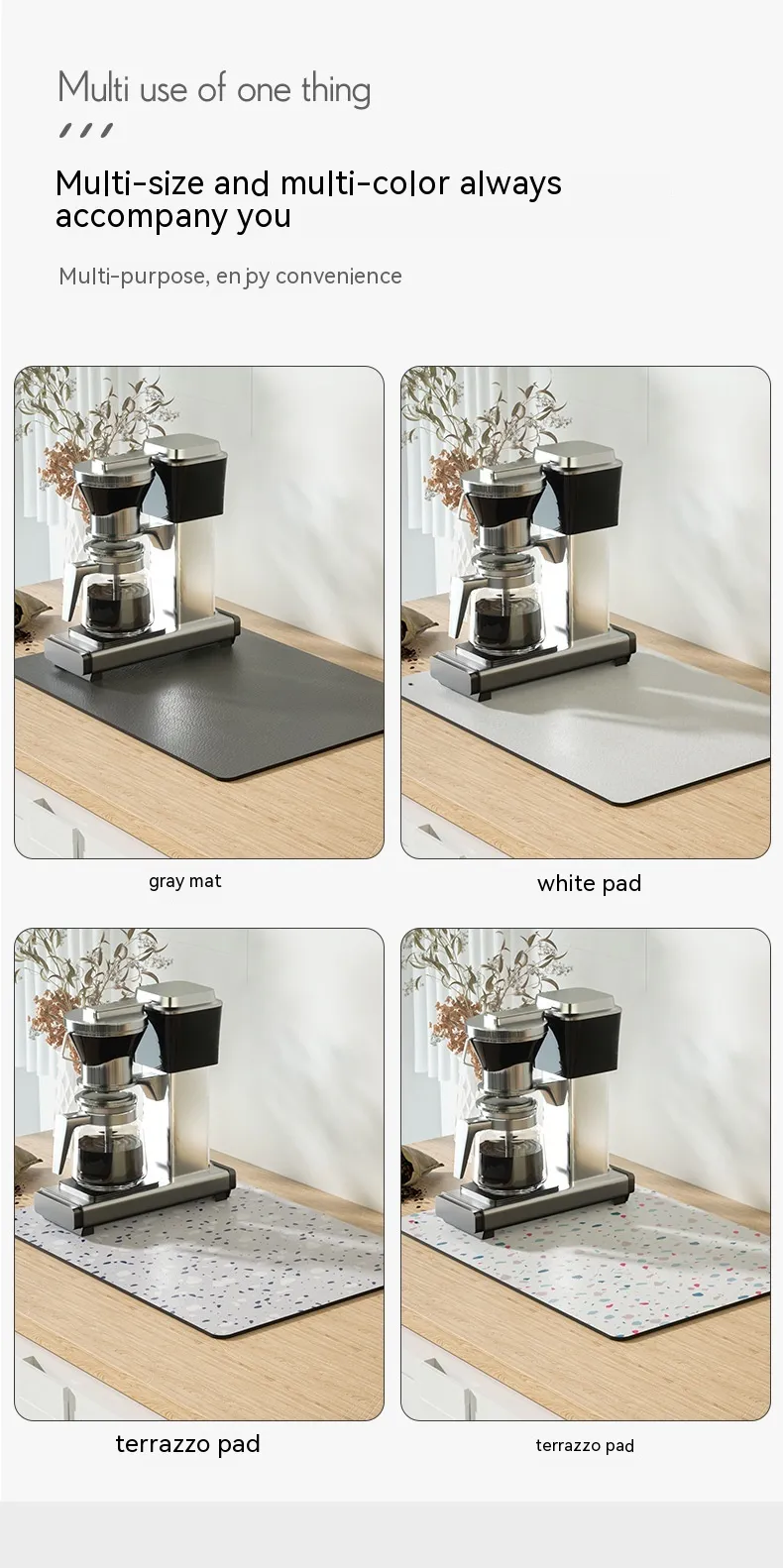 This Kitchen Countertop Drain Mat stands out because of its practical and versatile design. Unlike traditional dish drying mats that can absorb water but leave your counters damp, this mat ensures that excess moisture is efficiently drained away, keeping your kitchen surfaces dry and protected. The non-slip base and durable materials make it a reliable addition to any kitchen, while its easy-to-clean design provides added convenience for busy households.