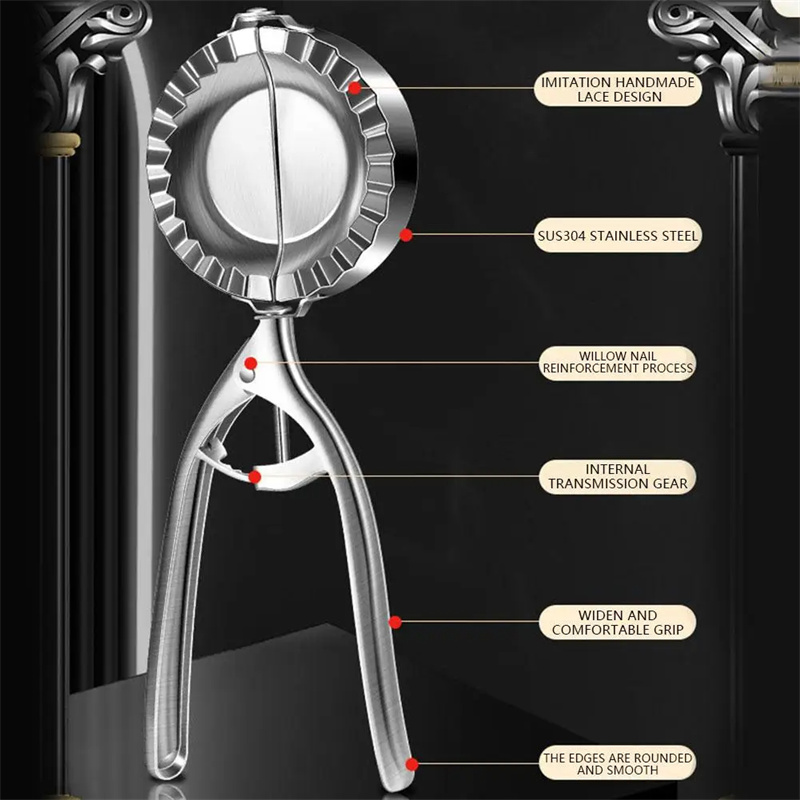 flat, add the filling, and close the dumplings firmly. The handle provides a comfortable grip, making the process even more convenient.