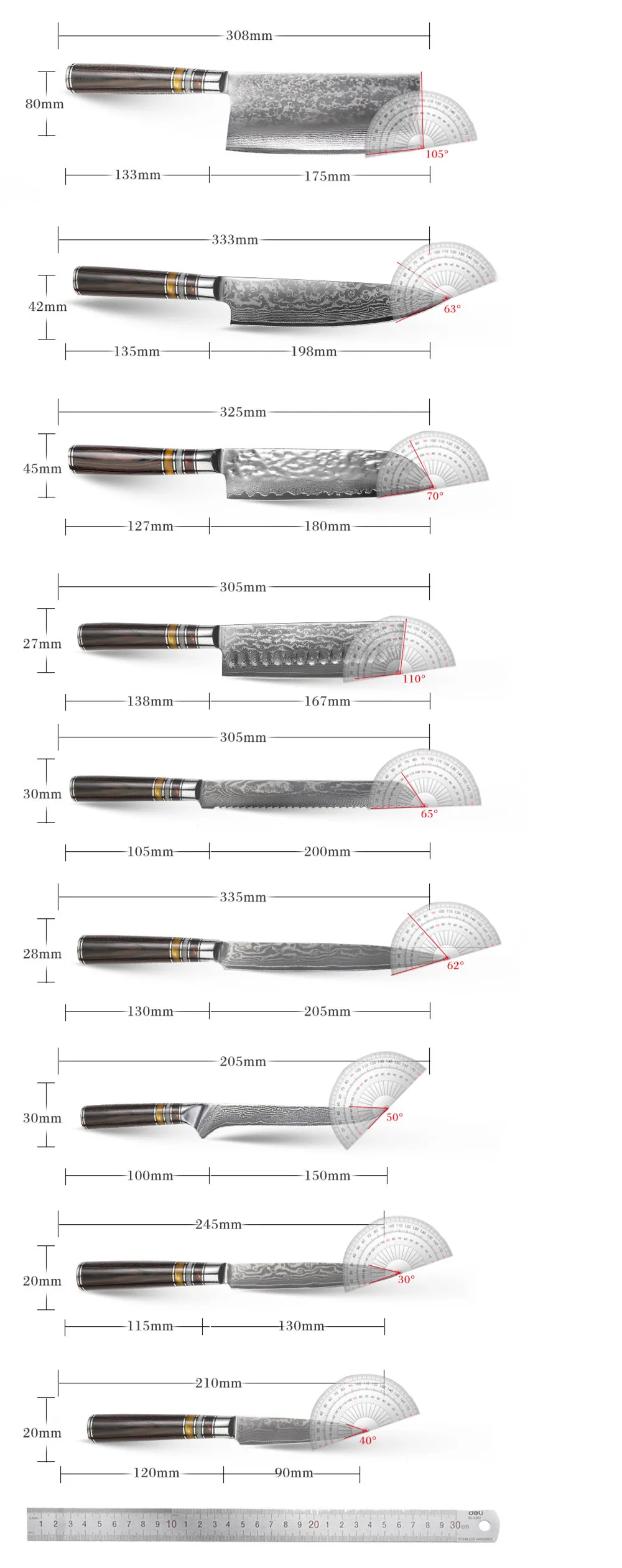knife,6 inch boning knife,5 inch all purpose knife,3.5 fruit knife