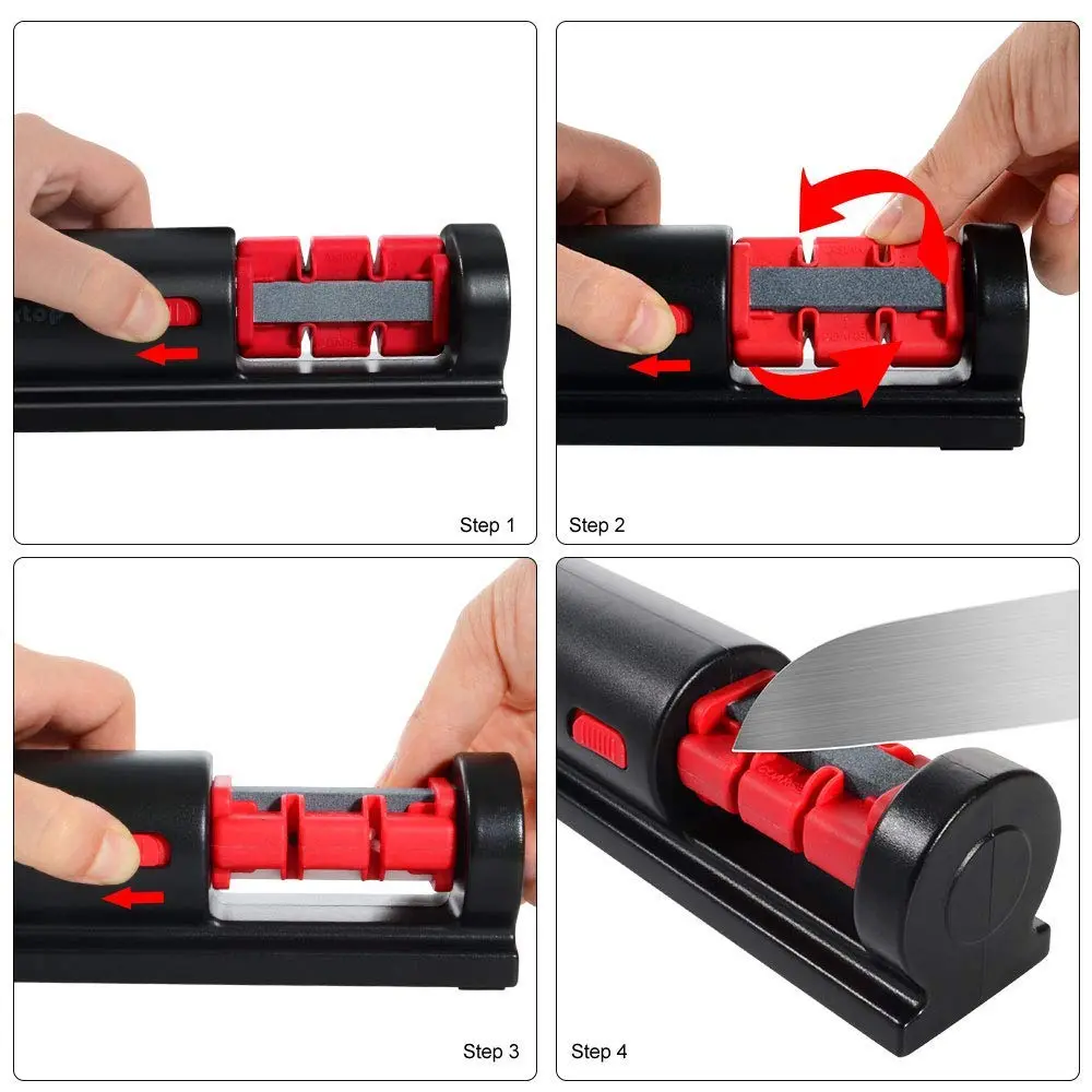 1.Sharpen both your Standard knives and your Asian style knives with the 4 stage knife sharpener.
