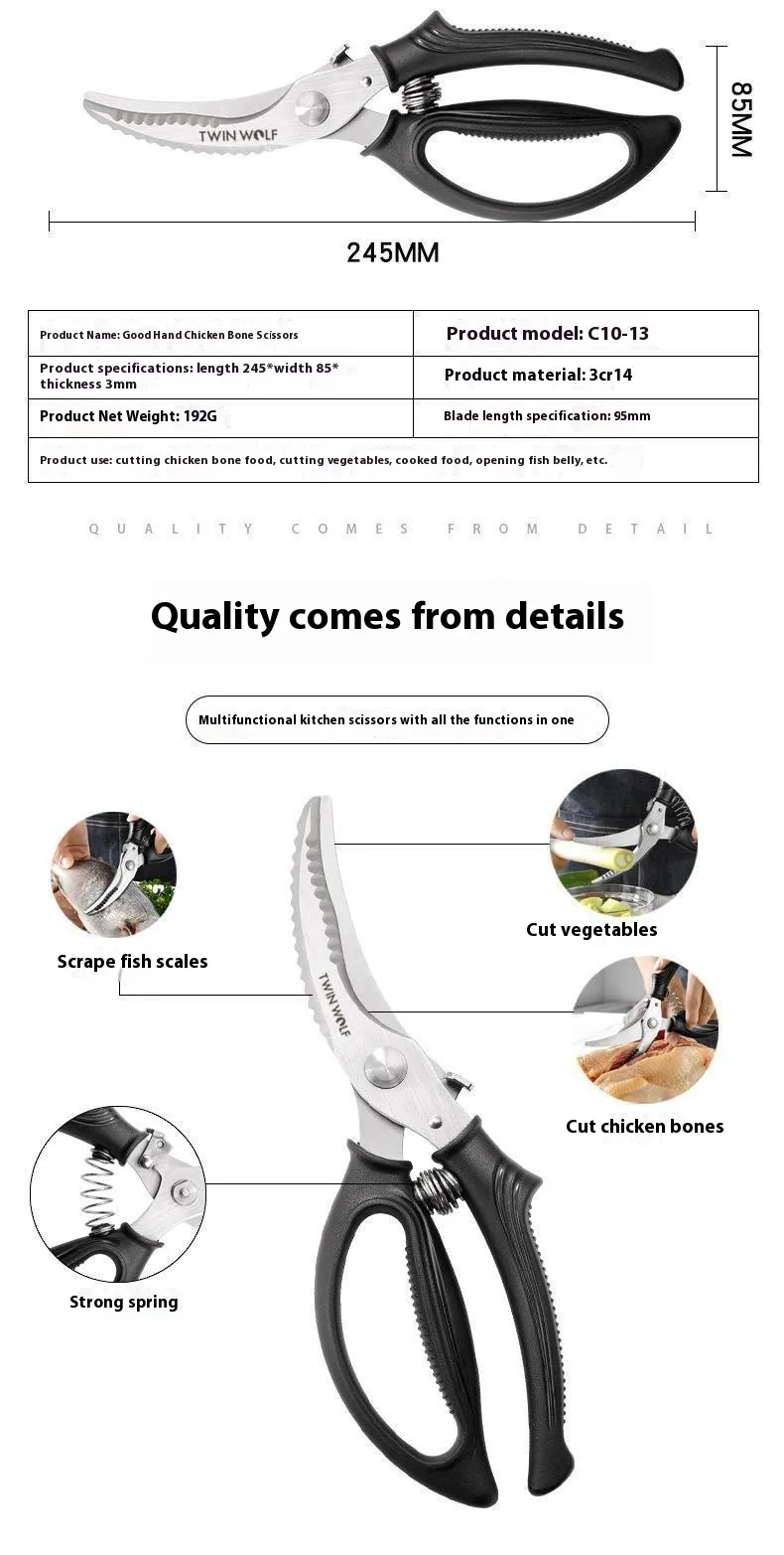 Versatile and Efficient: Whether you're chopping herbs, cutting meat, or shredding vegetables, these scissors do it all,
