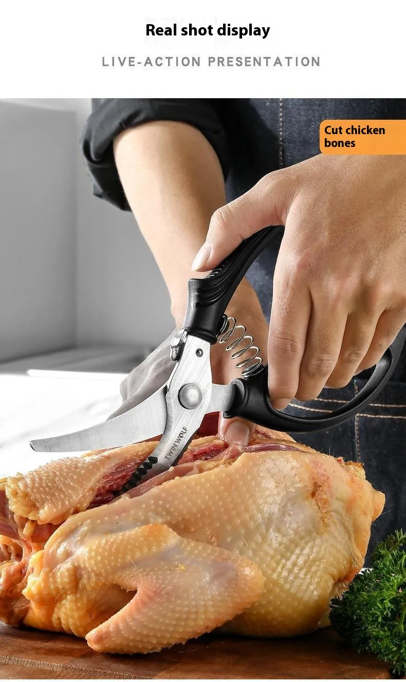 Heavy-Duty Performance: Designed for cutting through tough ingredients like poultry bones, herbs, and packaging, these