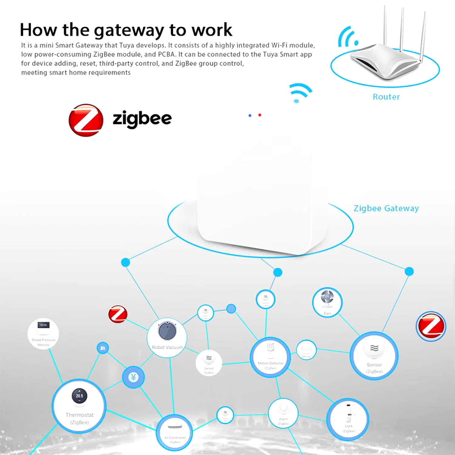 Enhance your smart home experience with the Tuya Zigbee 3.0 Gateway Hub, the essential device for connecting and controlling all your smart devices effortlessly.