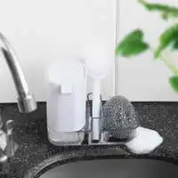 - A selection of brushes and sponges suitable for cleaning dishes, pots, pans, countertops, and even delicate kitchen appliances.