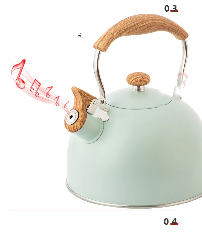 Thanks to its efficient design and high-quality materials, the Kitchenware New Green Whistling Kettle boasts a quick boiling time. It heats water rapidly, reducing your wait time significantly. Whether you need hot water for tea, coffee, instant soup, or any other culinary needs, this kettle ensures you get it fast.