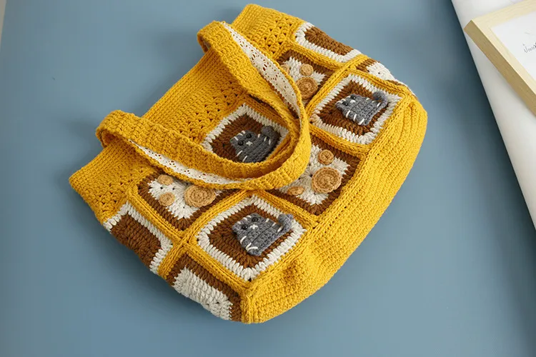 To keep your Kitten Handmade Wool Crocheted Square Shoulder Bag looking its best: