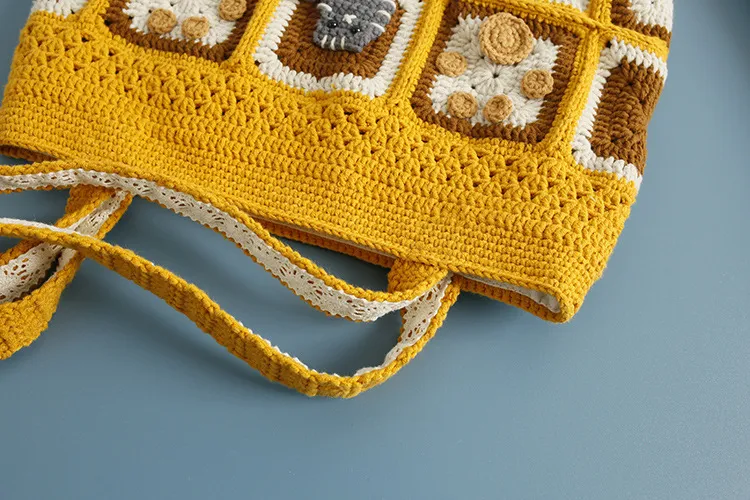 Kitten Handmade Wool Crocheted Square Shoulder Bag