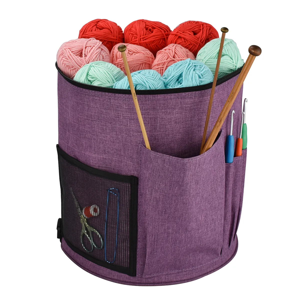 you to organise your yarn, needles, crochet hooks, stitch markers, patterns, and other tools neatly. No more tangled yarn or misplaced