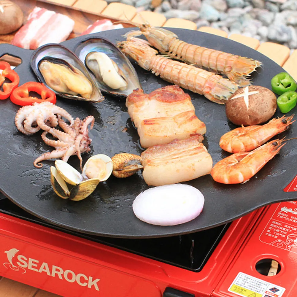A Korean BBQ Plate is a specialized cooking surface that allows you to grill food at the table, much like traditional Korean BBQ restaurants. Typically made from durable materials like cast iron, stainless steel, or non-stick coated surfaces, these plates have a distinctive design with raised edges to contain juices and fats. Some models feature a central grill for meats, while others have separate sections for grilling vegetables, seafood, and other accompaniments. The Korean BBQ Plate is often paired with a portable heating element (such as a gas burner or electric heater) to provide consistent heat while grilling your favorite dishes.