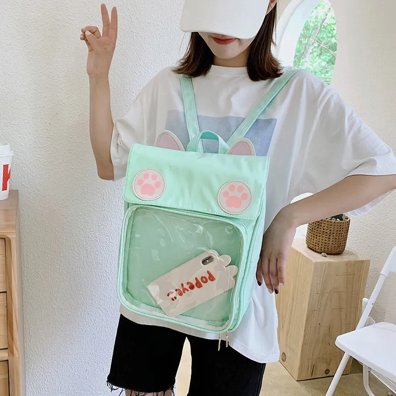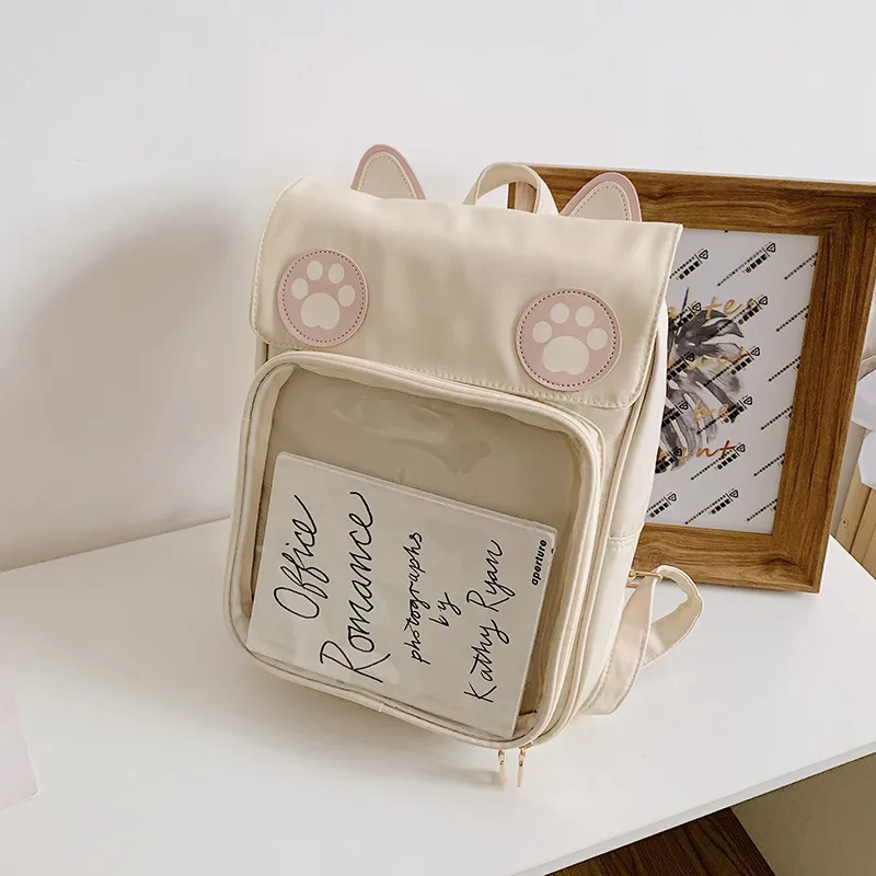 The standout feature is the pair of 3D cat ears on top of the backpack, adding a playful and unique element that cat lovers and fashion
