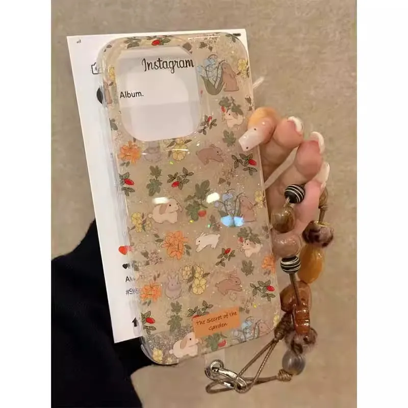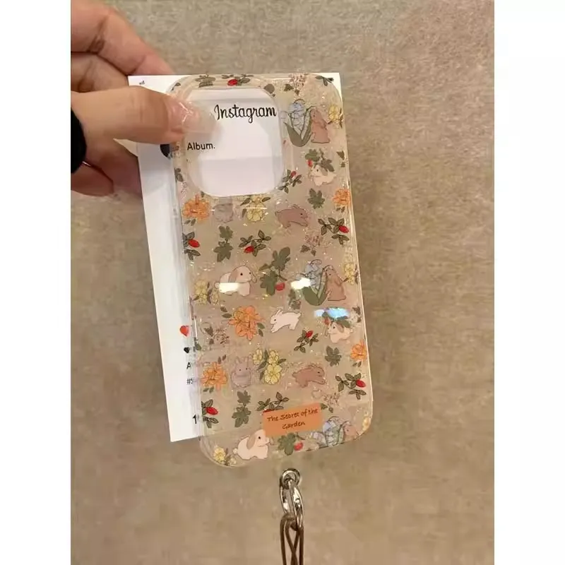 Korean Flower Rabbit Phone Case Rope Handle