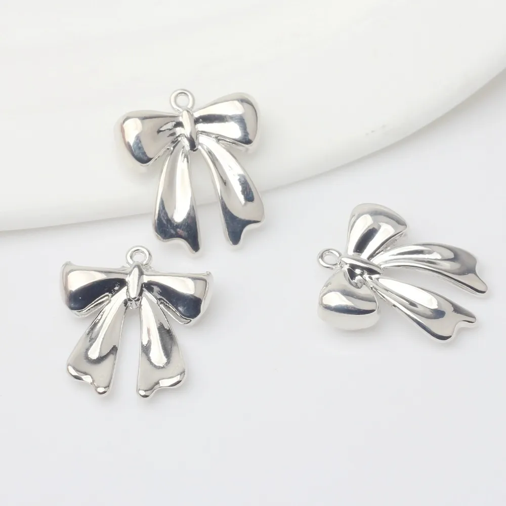 Korean Style Fashionable Simple Alloy Bow Silver-plated Pendant Accessorie