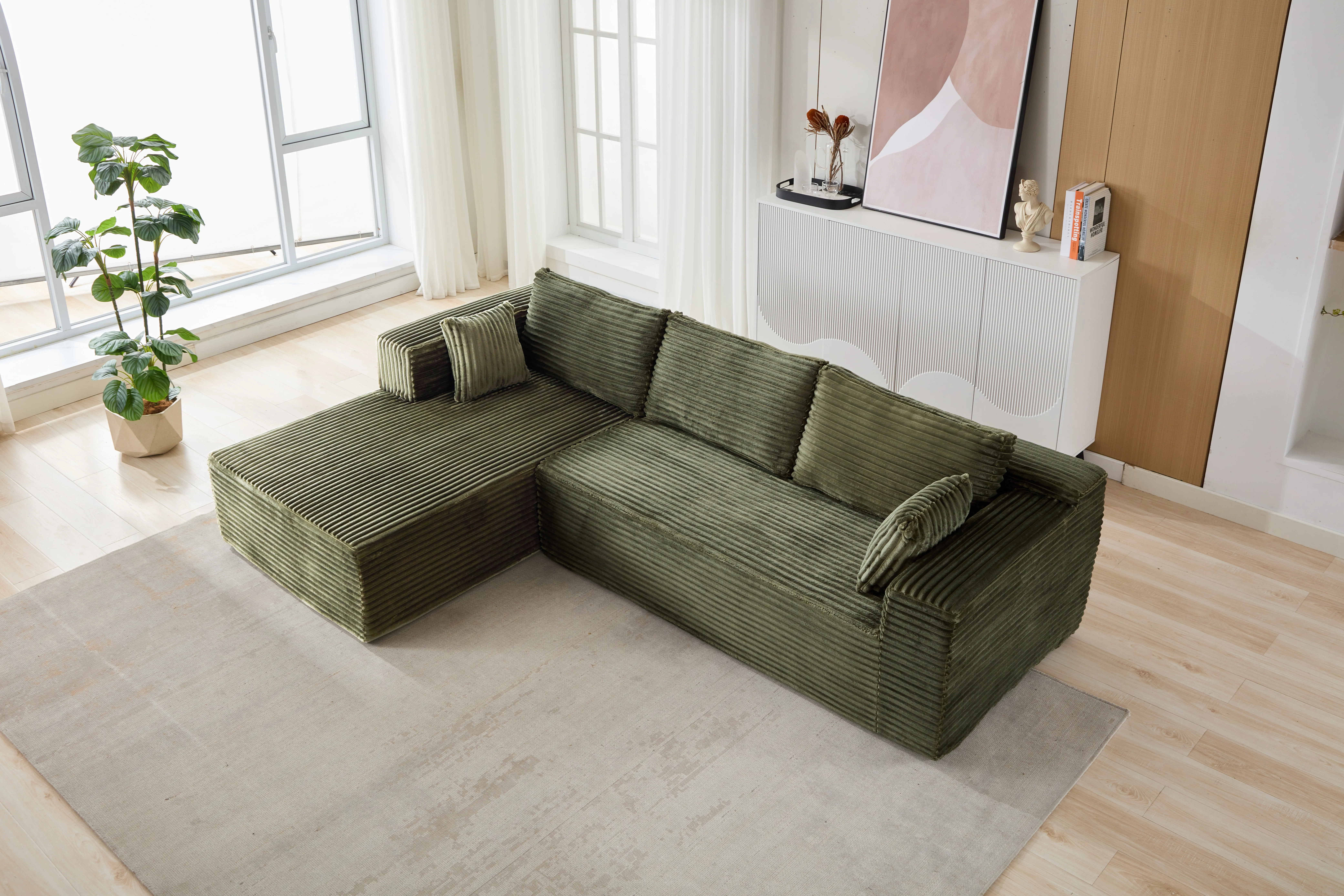 Product Name:Compression Sectional Couch with Comfy Chaise, Boneless L Shape Sofa with Deep Seat, Minimalist Modular Couches Sleeper for Living Room Bedroom Apartment Lounge,corduroy,Green