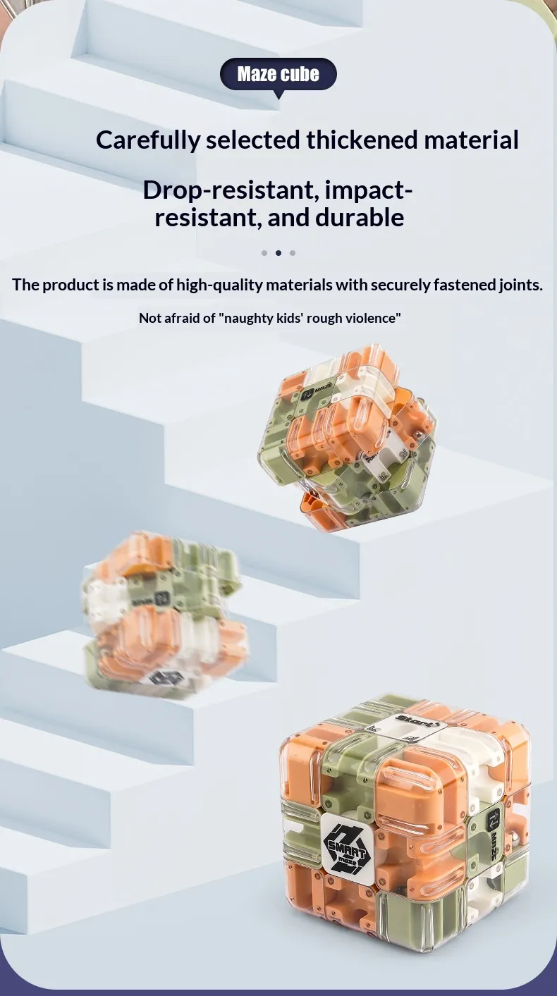 Constructed with a transparent outer shell, the cube allows full visibility of the maze inside, helping players anticipate turns, drops, and barriers. The internal track system is designed with increasing difficulty, requiring steady hands and strategic thinking to progress from start to finish. Each movement demands precision, making the puzzle both mentally and physically engaging.