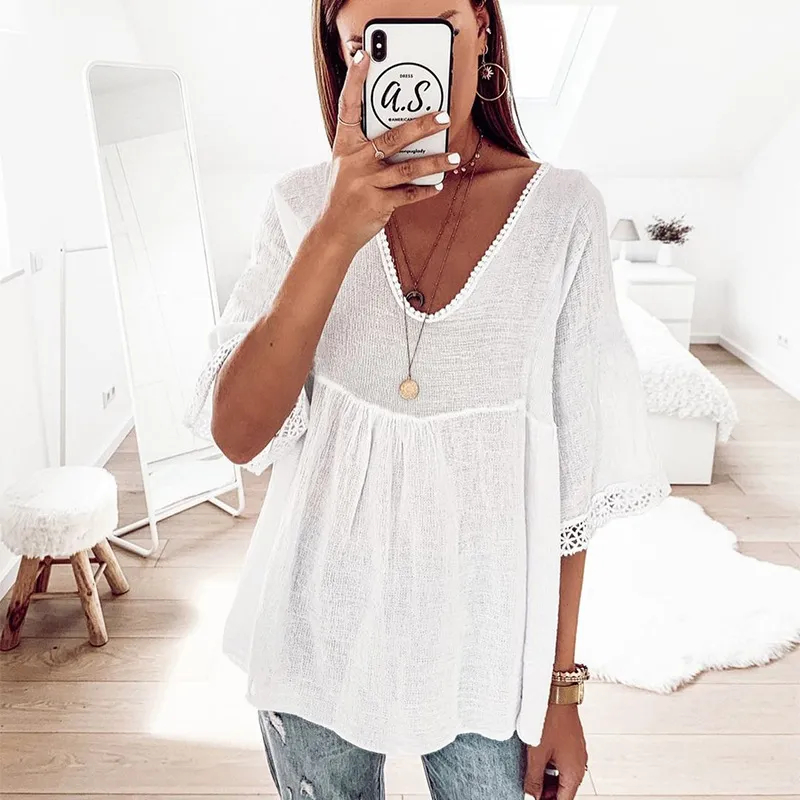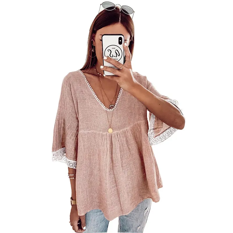 Lace Stitching Five-point Sleeve Shirt Women's Clothing
