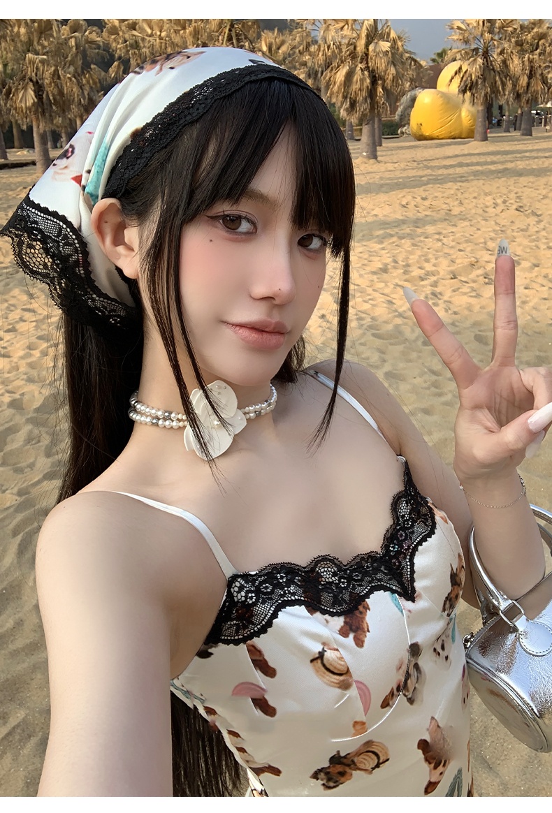 Lace Stitching Silk Texture Hair Band Triangle Shawl