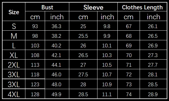 Size: S, M, L, XL, XXL, XXXL, XXXXL, 5 XL