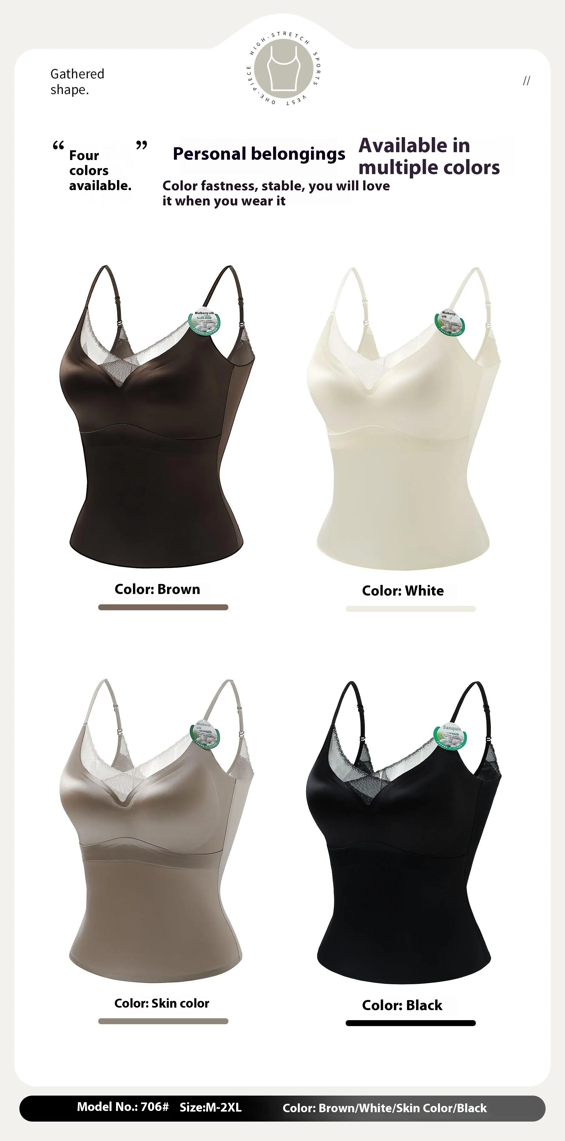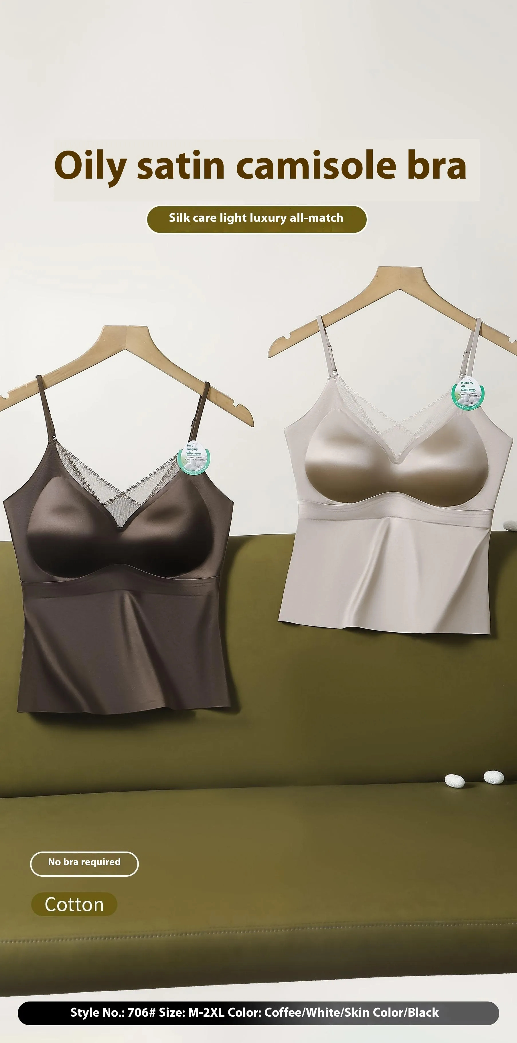 Available in Sophisticated Colors: The Lace V-neck Sour Vinegar Satin Small Sling Vest is available in a