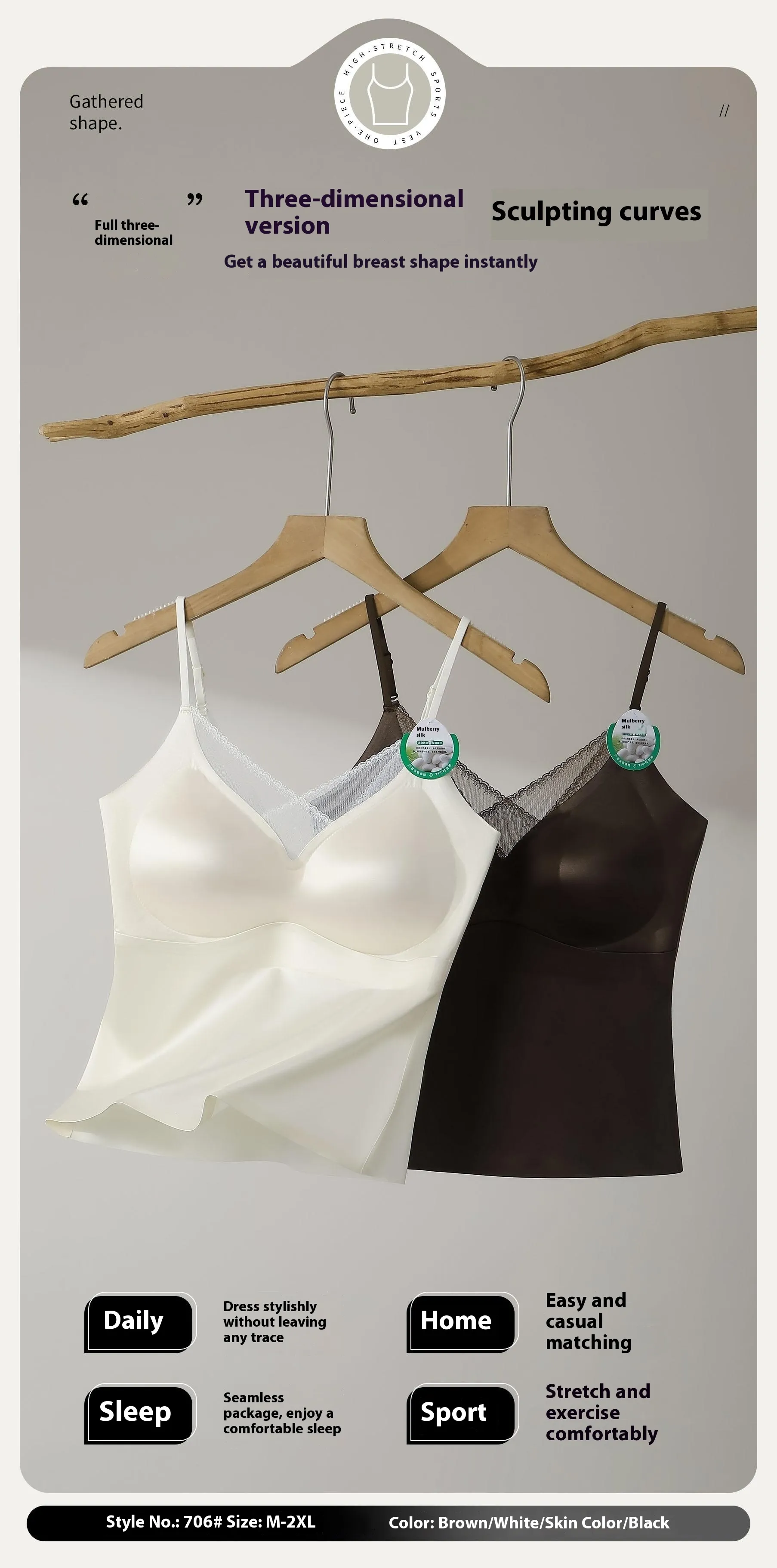 Function: gathering, seamless, breathable, upper support, anti-exposure, comfort, chest retention