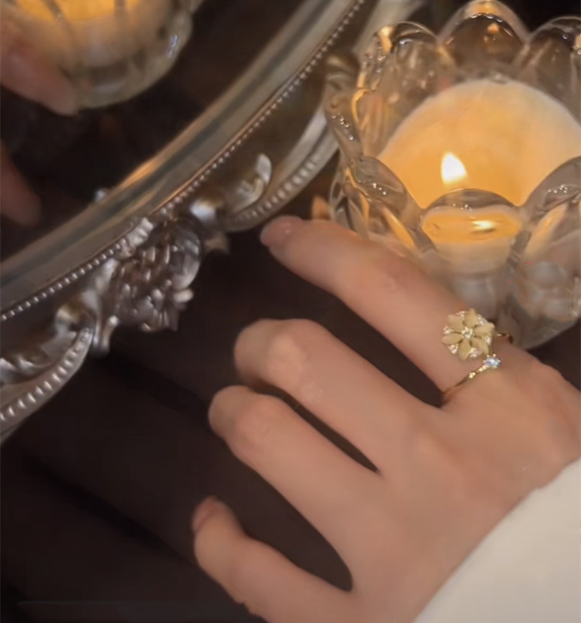 Color : Rotating cat eye flower ring