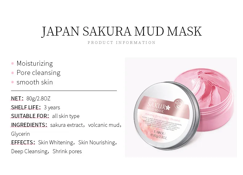 Lai Kou Japanese Cherry Blossom Mud Mask 80g Moisturizing Moisturizing Nourishing Fine Pores