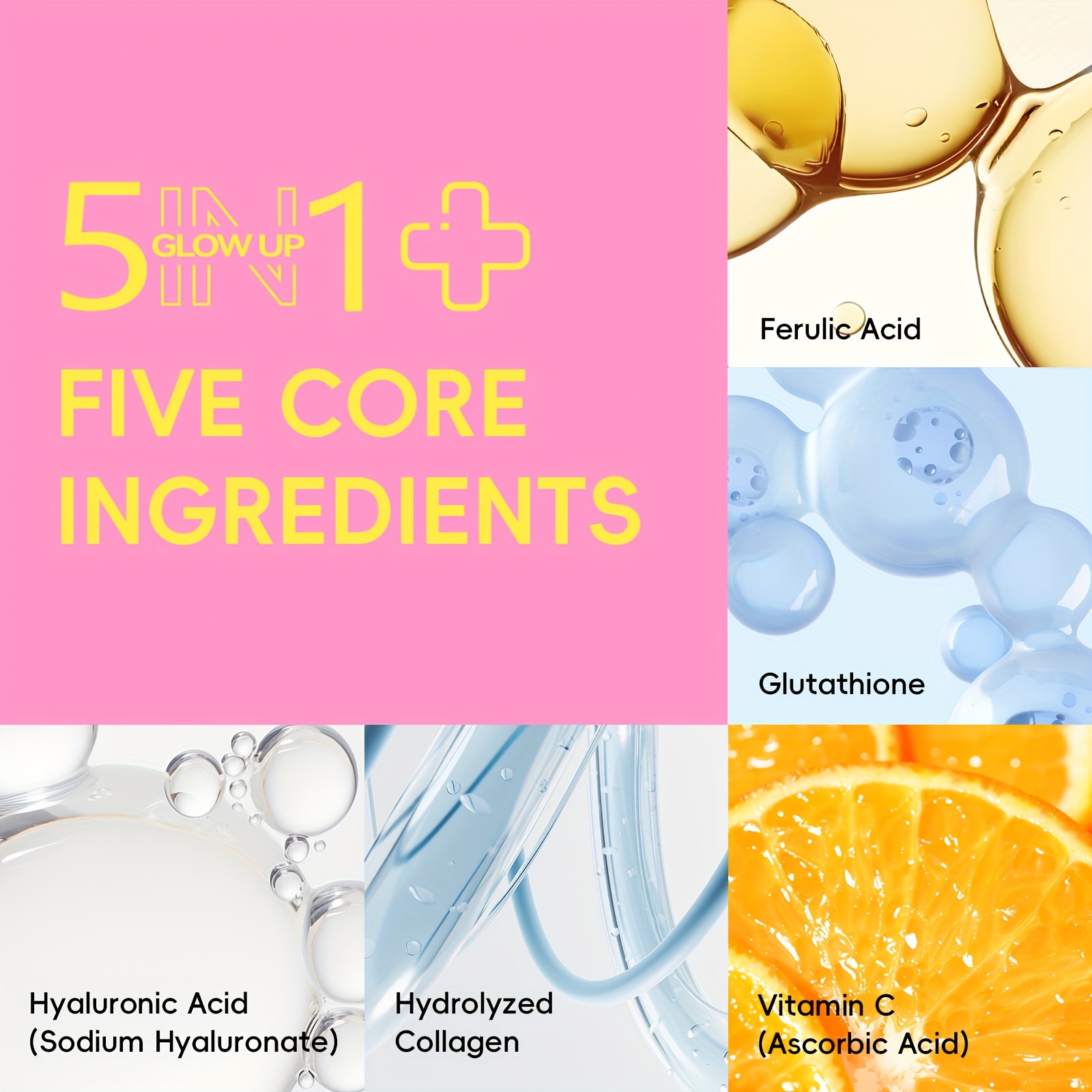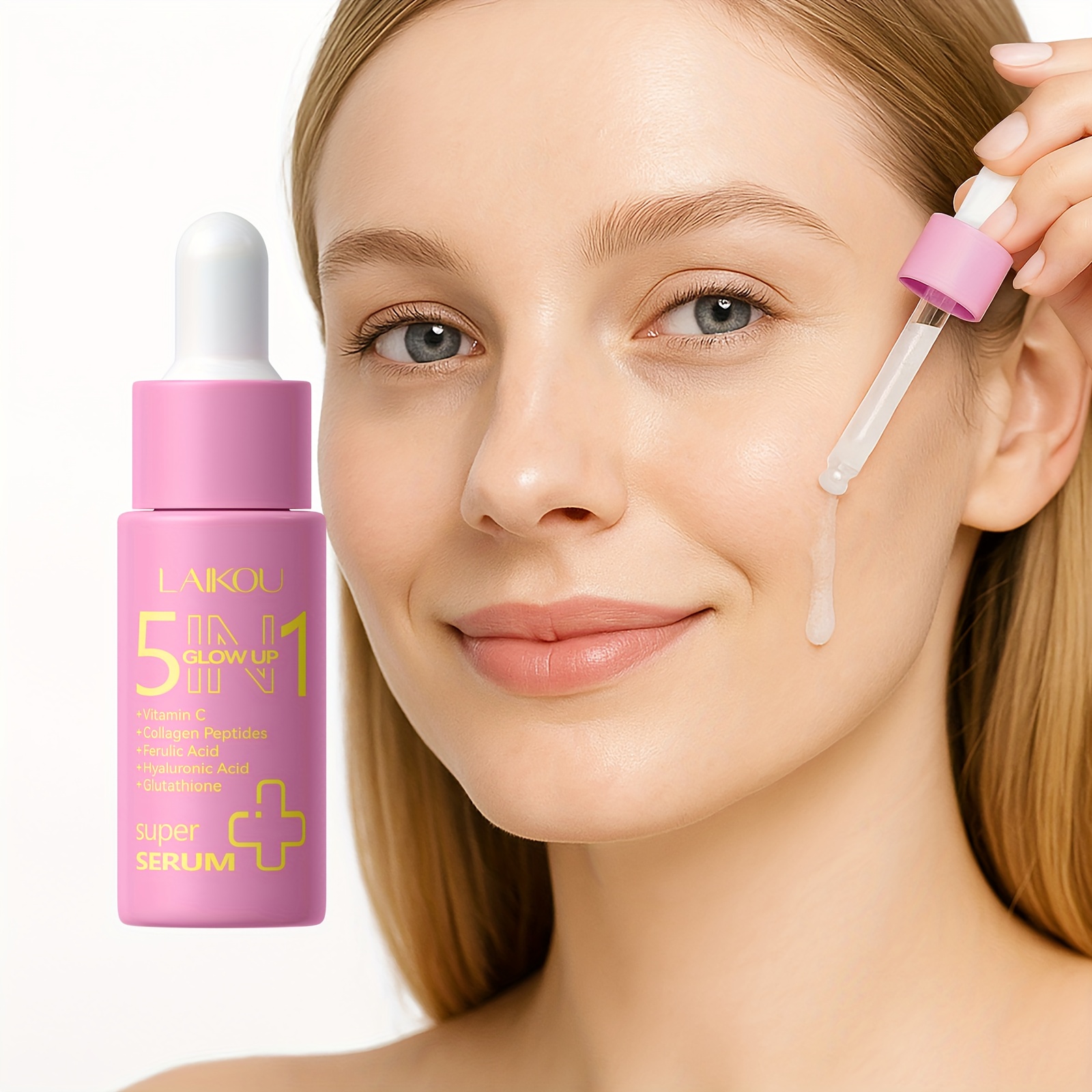 The Laikou 5-in-1 Glow Up Skincare Set is your all-in-one skincare solution for achieving brighter, more youthful skin. Infused with powerful ingredients like Vitamin C, Hyaluronic Acid, Collagen Peptides, and Ferulic Acid, this set provides deep hydration, boosts radiance, and targets signs of aging.