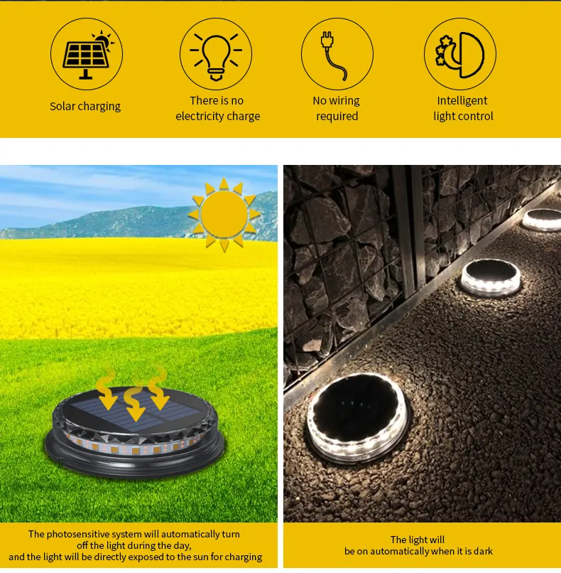 [Solar power and energy saving] Our solar ground light is composed of 17 durable LEDs and a high-efficiency solar panel.