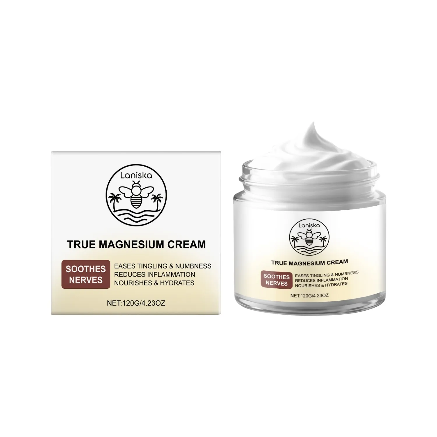 Magnesium cream, nerve pain relief, anti-inflammatory cream, tingling relief, muscle soreness treatment, hydrating magnesium cream, Laniska True Magnesium Cream, skincare for nerve discomfort.