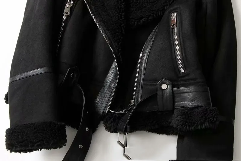 Lapel Jacket Suede Lamb Wool Warm Coat Motorcycle