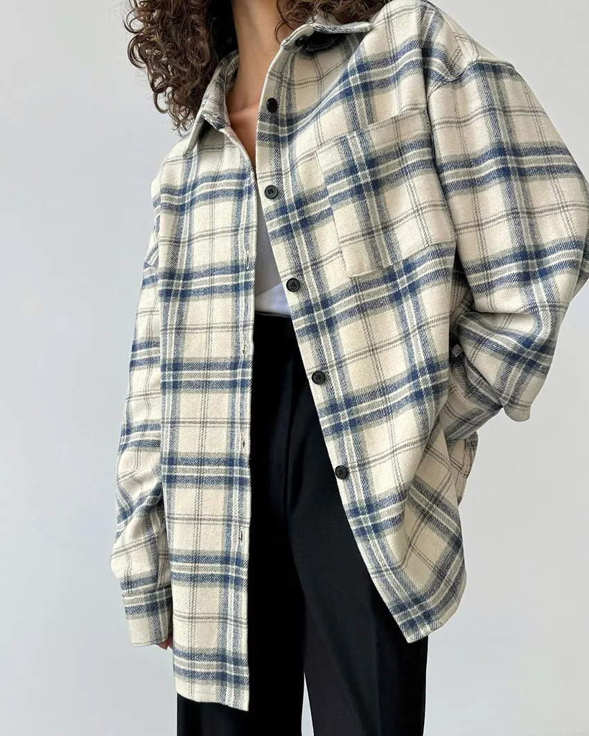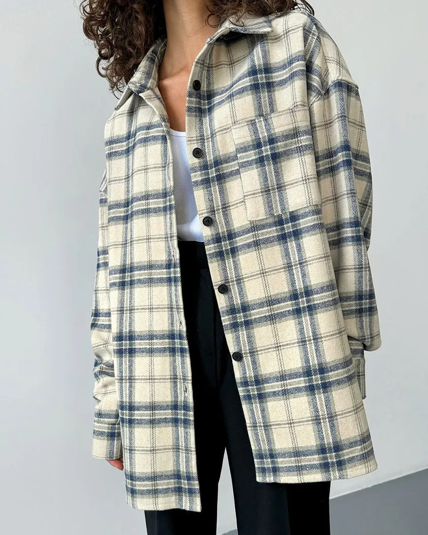 Stay Stylish and Comfortable with the Lapel Loose Plaid Long Sleeve Shirt
