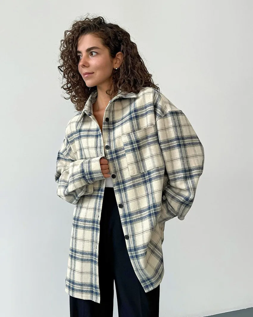 Lapel Loose Plaid Long Sleeve Shirt – Casual Comfort with Timeless Style