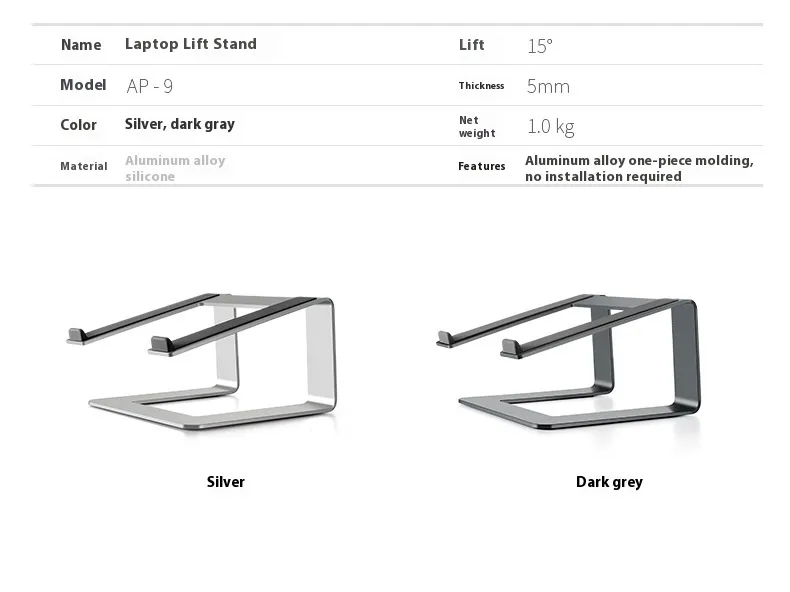 The Laptop Aluminum Alloy Base Plate Desktop Riser is designed to improve your workspace by providing optimal height and angle adjustments for laptops. Its sleek aluminum alloy construction ensures durability, stability, and a modern aesthetic, while its ergonomic design reduces strain on your neck and shoulders. Ideal for home offices, workplaces, or on-the-go setups, this riser enhances comfort and productivity.